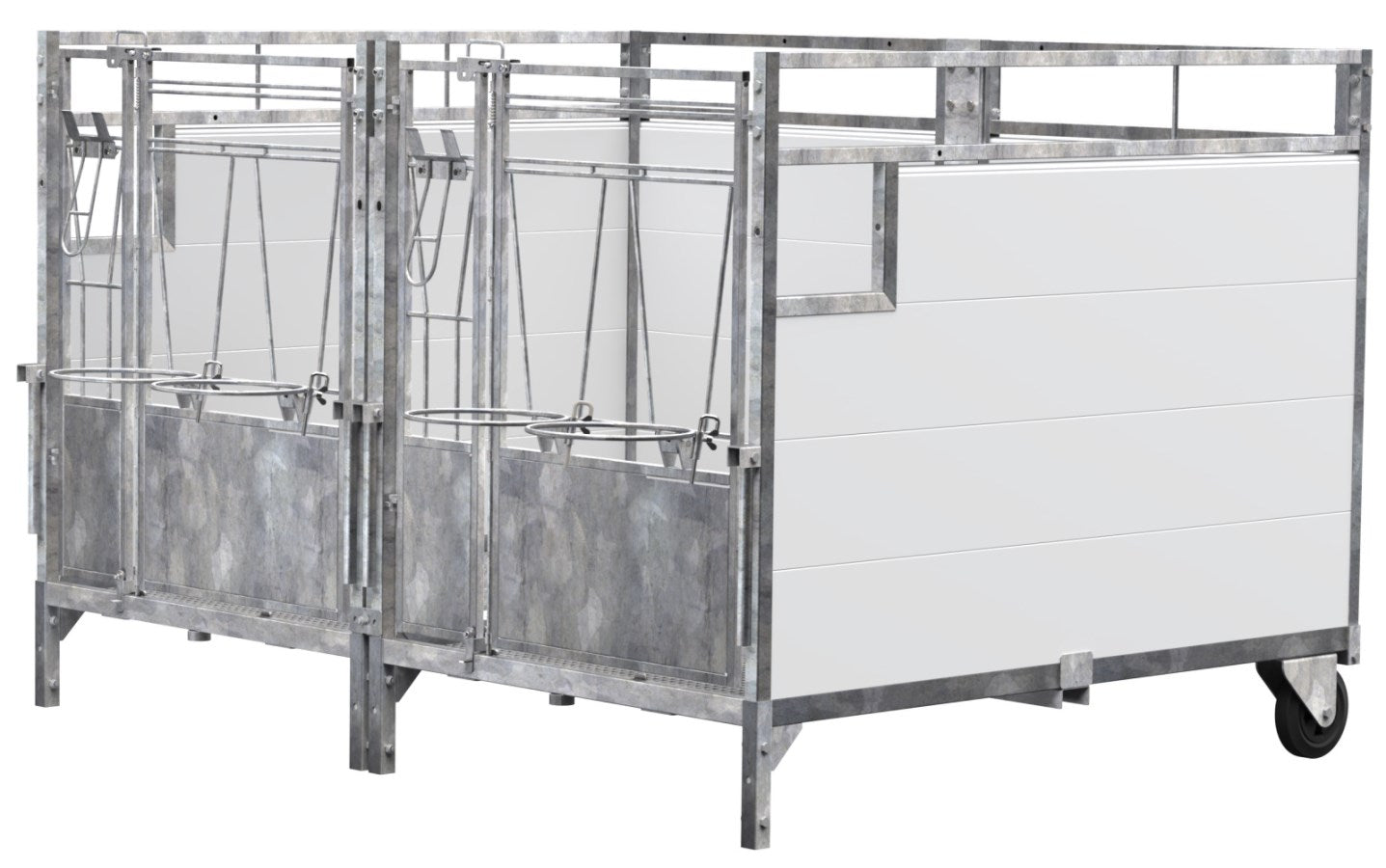 A Kerbl dupla borjúbox ideális feltételeket biztosít a borjak páros elhelyezéséhez, és kézzel vagy homlokrakodóval is könnyedén mozgatható. Tökéletes megoldás a megfelelő borjúneveléshez.
